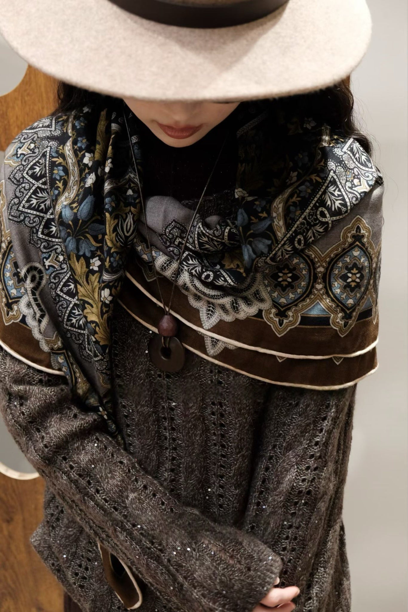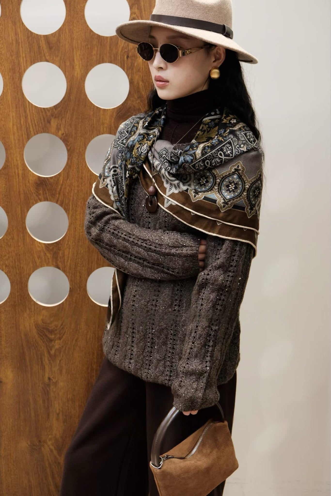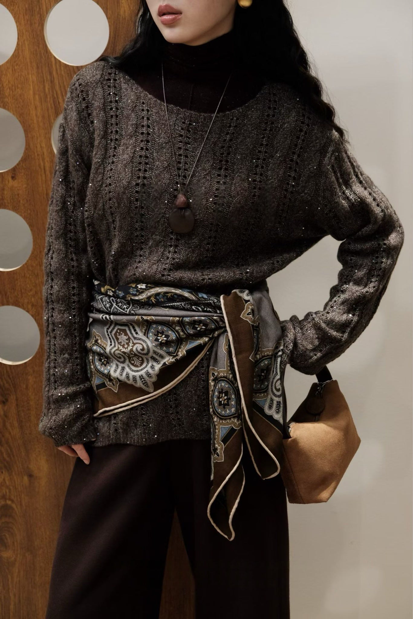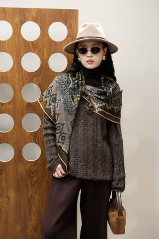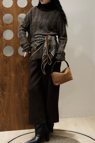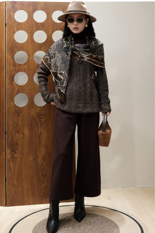 Deep Brown Off-The-Shoulder Crochet Sweater Sale