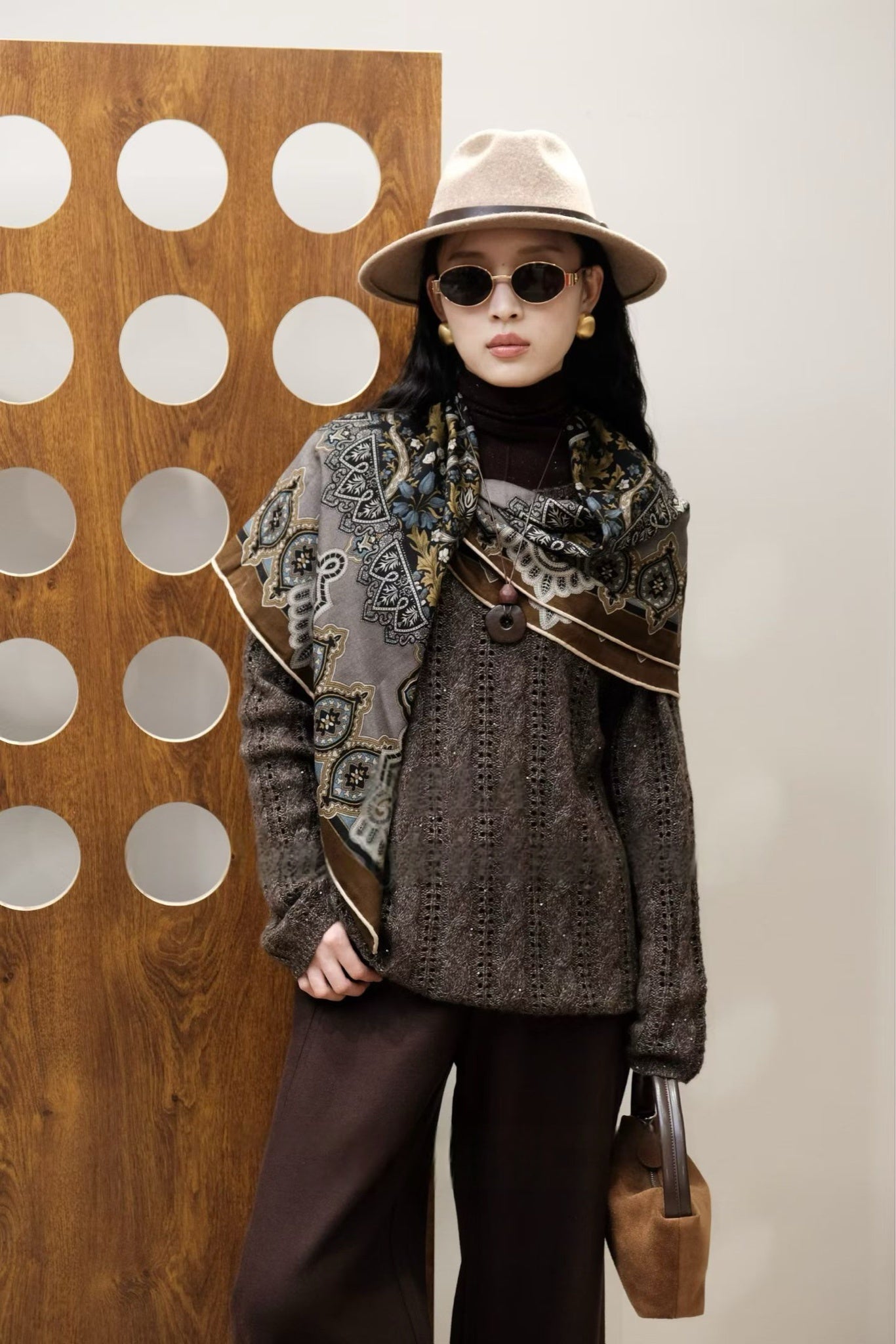 Deep Brown Off-The-Shoulder Crochet Sweater - s